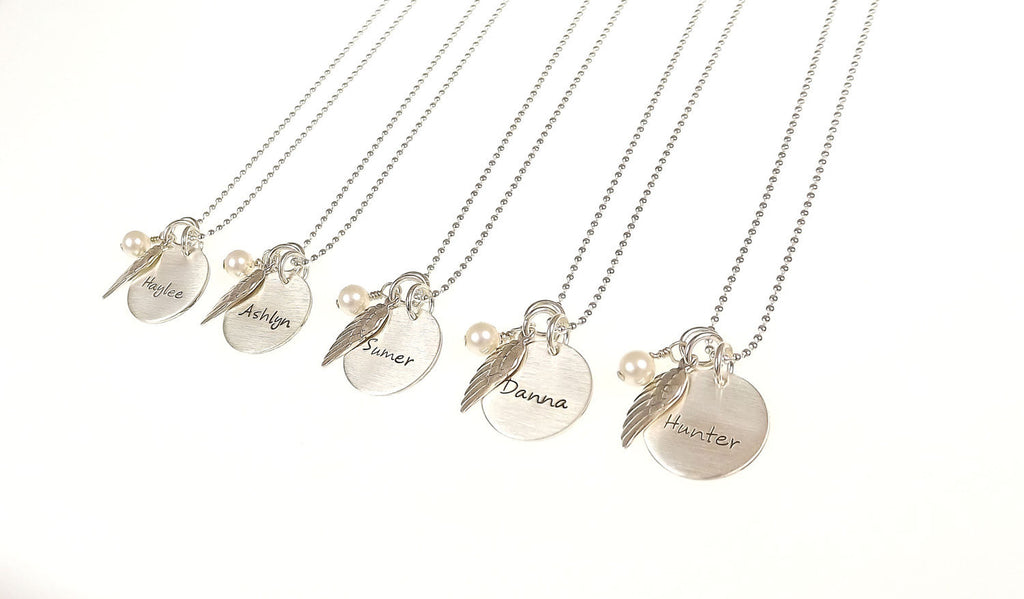 The letters are hand stamped one at a time so they are not perfectly straight which lends itself to the unique handmade look of each necklace. No two necklaces are ever the same!