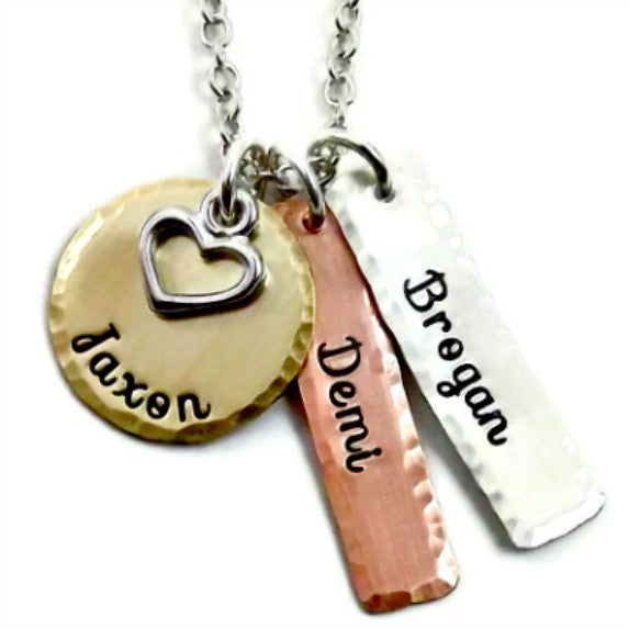 The letters are hand stamped one at a time so they are not perfectly straight which lends itself to the unique handmade look of each necklace. No two necklaces are ever the same!