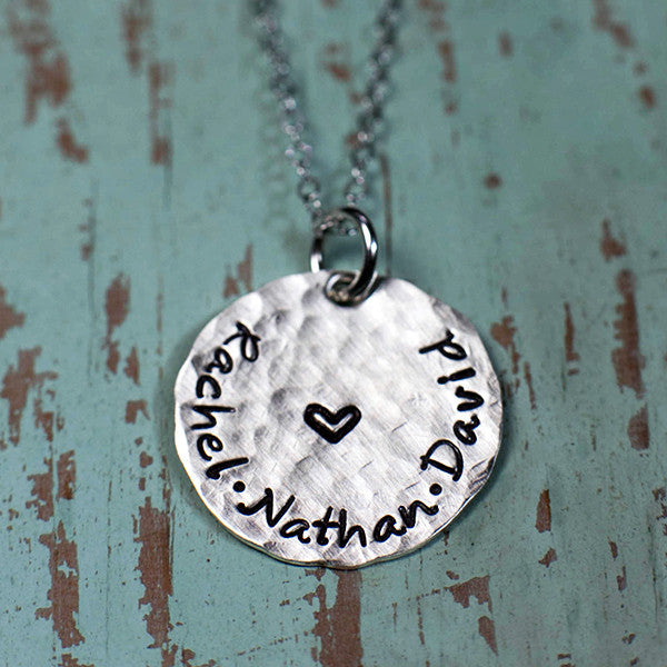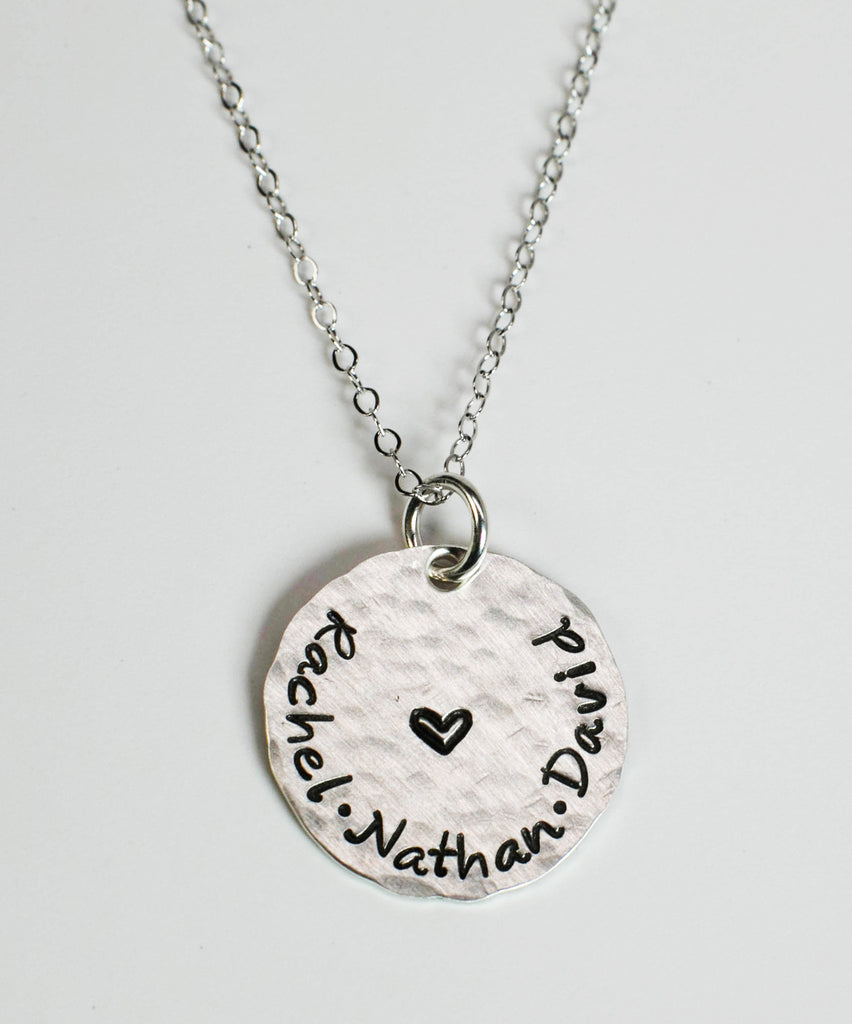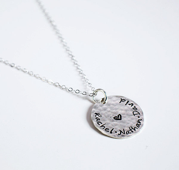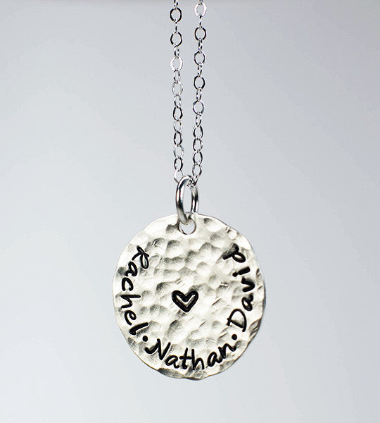 The letters are hand stamped one at a time so they are not perfectly straight which lends itself to the unique handmade look of each necklace. No two necklaces are ever the same!