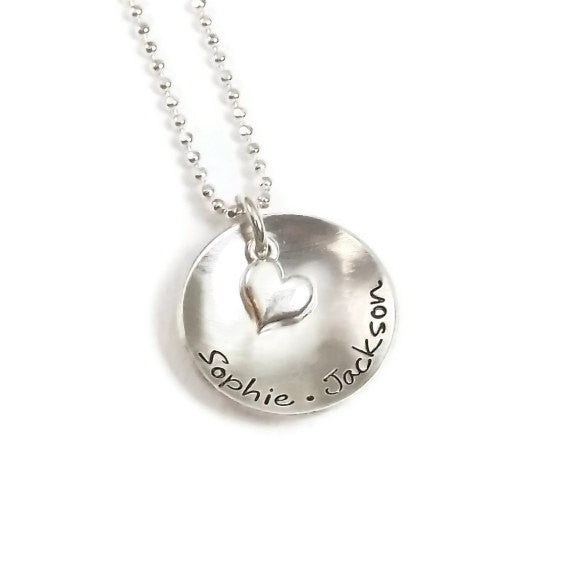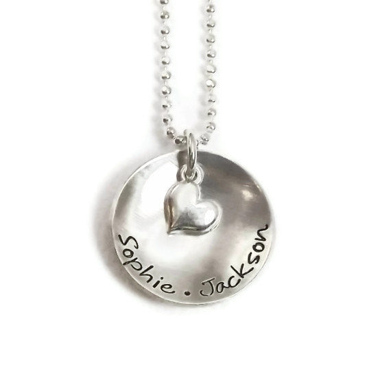 The letters are hand stamped one at a time so they are not perfectly straight which lends itself to the unique handmade look of each necklace. No two necklaces are ever the same!